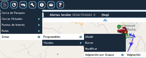 de interés, rutas o zonas asignados, adicional se tienen dos opciones, el icono visualizar