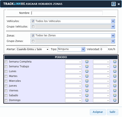 Para visualizar la pantalla de asignación en cada una de las opciones puntos de interés, rutas o zonas el usuario debe escoger la opción Asignar.