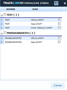 En esta pantalla vamos a poder observar las zonas agrupadas