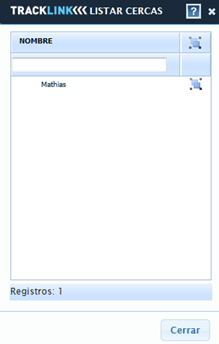 ˇ Despliega una pantalla con el listado de todas las cercas poligonales creadas.