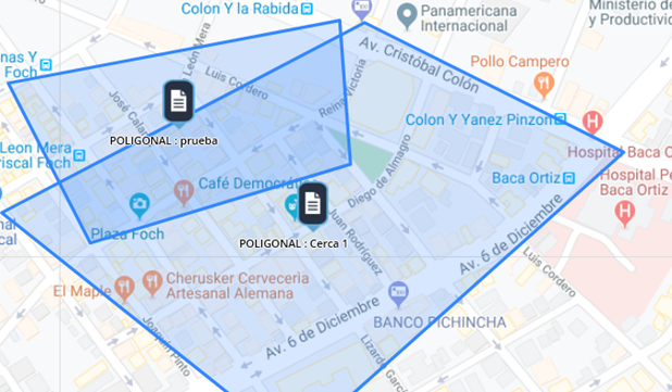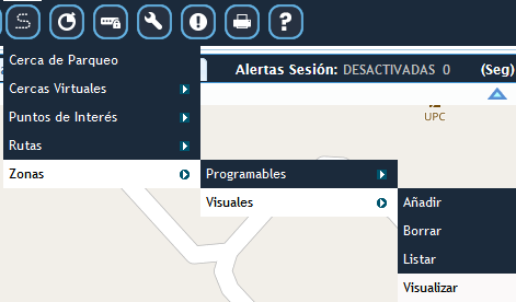 mapa seleccionar la opción Cercas Virtuales, Visuales, Visualizar, el icono que