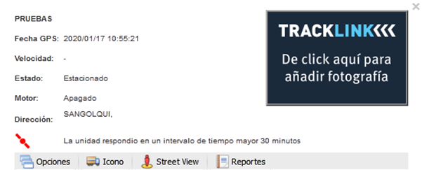 Al momento de dar click en el vehículo se abre una ventana