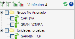 primera vez el usuario observará todos sus vehículos agrupados en la carpeta Grupo No Asignado