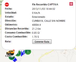 icono fin de recorrido de rutas se despliega la siguiente información: