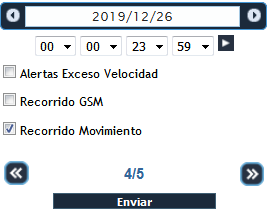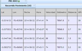de la unidad con velocidades mayores a 5 Km/h en el mapa y en la grilla de