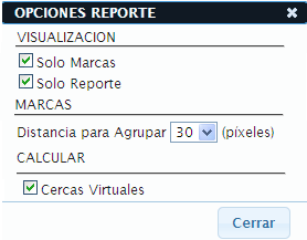 o CERCAS VIRTUALES: Esta opción permite activar y desactivar la columna Cercas Virtuales en los reportes.