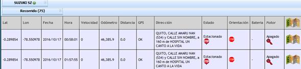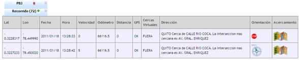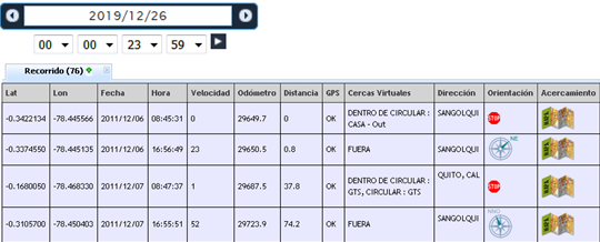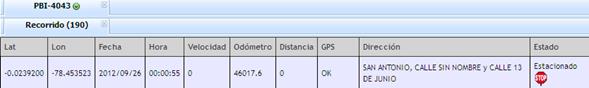 o VISUALIZACIÓN – SOLO REPORTE: Solo visualizamos la tabla con los datos de recorrido como se observar en la siguiente imagen: